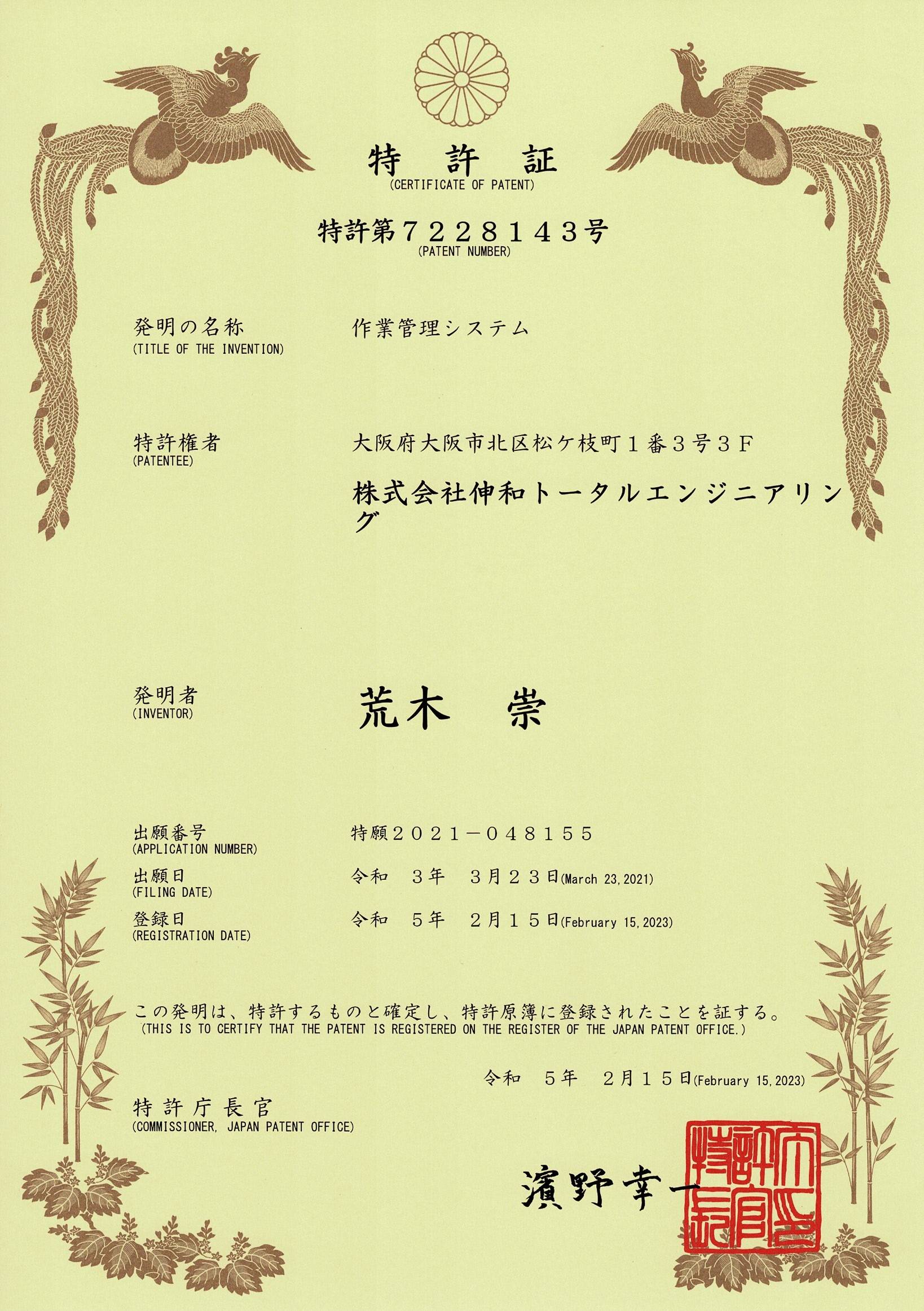 伸和トータルエンジニアリングが提供する報告書作成ツール「R-EASY」は、2023年2月15日に「作業管理システム」として特許を取得いたしました。